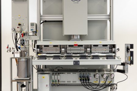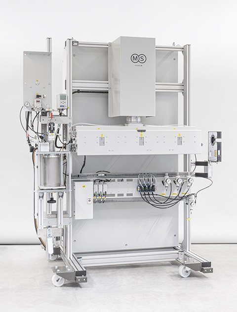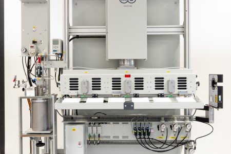 The curing unit can be easily integrated into an existing rewinding line or into a coloring line by replacing the UV curing unit, adapting the software and taking into account the smaller footprint of the machine.